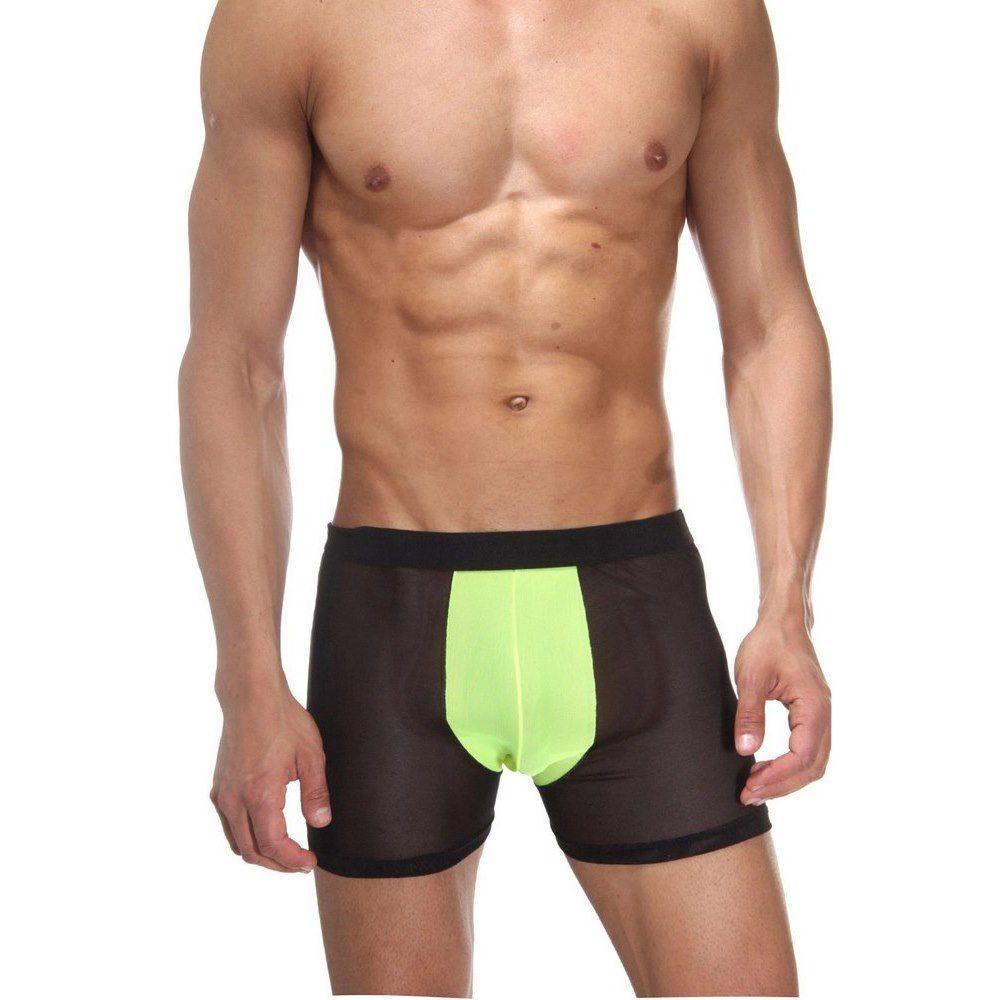 Мужские полупрозрачные трусы-боксеры с неоновой вставкой.