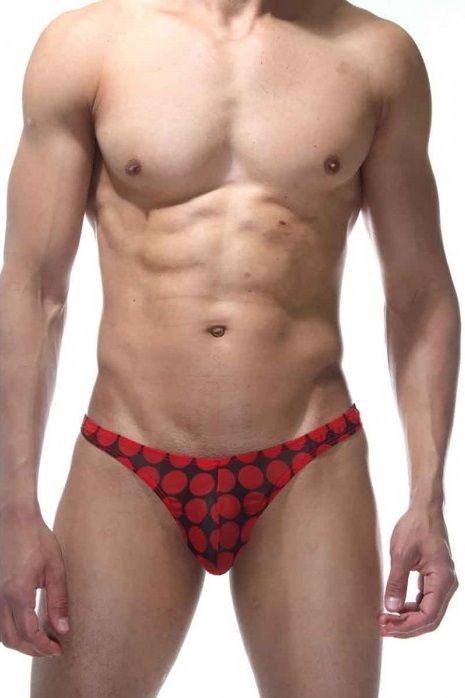 Мужские трусы-тонга из тонкой ткани в крупный горох.