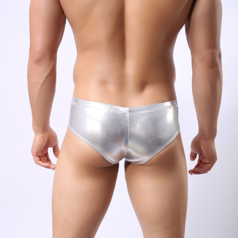 Серебристые мужские трусы-брифы с кольцом.