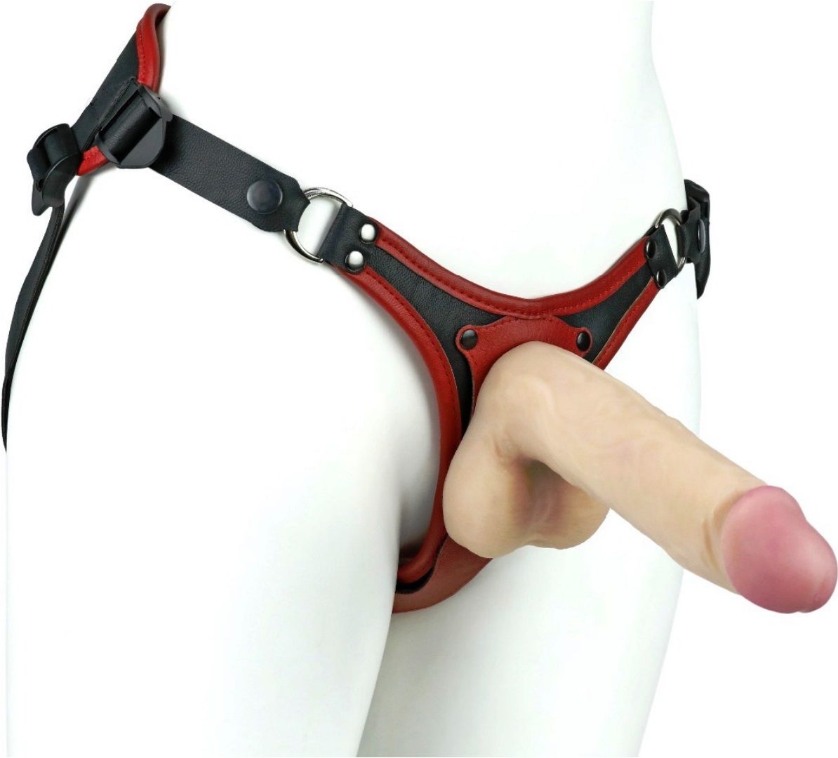 Перед вами третье поколение женского классического пояса, снабженного передней частью с возможностью установить 2 типа коннекторов (фиксаторов). Акцент сделан на максимальном комфорте, атравматичности, точности и удобству регулировки. Добавлен бандаж. Бархатный влагопоглощающий внутренний слой, применение экокожи, кожаные стропы, бейка по краю многослойной основы изделия - дополняют картину обновления конструкции. Можно зафиксировать кольцом любой фаллоимитатор на присоске (2 кольца в наборе комплекта с разными диаметрами). Для смены колец – необходимо расстегнуть кнопки ремней вокруг отверстия и поставить подходящее по размеру кольцо. Коннектор (бобышка – соединитель) легко извлекается, разборный, состоит из двух частей, соединяющихся резьбой. Универсальность стыковочного узла позволяет использовать абсолютное большинство насадок, продающихся отдельно. Длина фаллической насадки - 20 см, рабочая - 16,5 см, диаметр - 4,2 см. Длина анальной насадки - 18,5 см, рабочая - 17 см, диаметр - 5 см. Длина вагинальной пробки - 11,5 см, рабочая - 11 см, диаметр - 3,7 см.