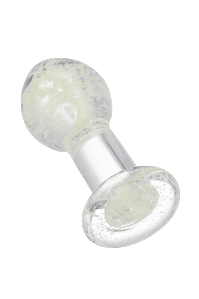 Прозрачная анальная втулка из закаленного стекла содержит флуоресцентные микрочастицы, которые светятся в темноте. Такой необычный дизайн помогает внести в интимные игры разнообразие. Достаточно зарядить игрушку под дневным или искусственным светом, чтобы насладиться ее мерцанием и свечением в темноте. Оптимальный размер, каплевидная форма и наличие ограничителя делают использование анальной игрушки безопасным.