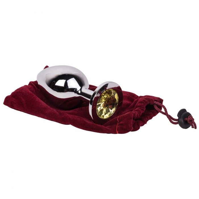 Гладкий большой плаг из отполированной до блеска стали с кристаллом лимонного цвета в основании. Металл - материал с большой теплопроводностью, сначала он будет прохладным, но быстро нагреется до температуры Вашего тела. Стальные игрушки можно нагревать или охлаждать с помощью воды.